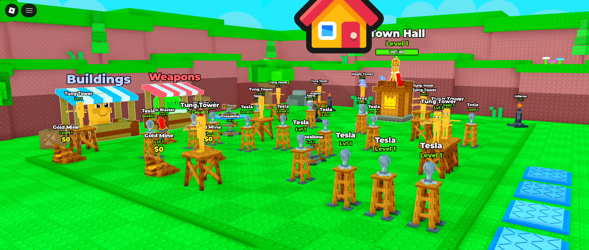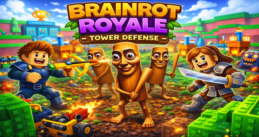 Brainrot Royale is a complete tower defense and base-building system where players must strategically place towers, upgrade their base, and survive incoming enemy waves.